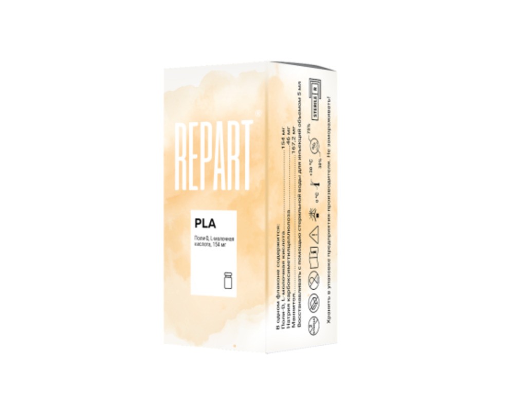 Основной компонент «Repart® PLA» – поли-D, L-молочная кислота (D, L – полилактид) – биосовместимый, биодеградируемый синтетический, длительно, но полностью резорбируемый и элиминирующийся из организма полимер из группы полимеров альфа-оксикислот, введение которого в ткани человека приводит к стимуляции синтеза коллагена I и III типа.